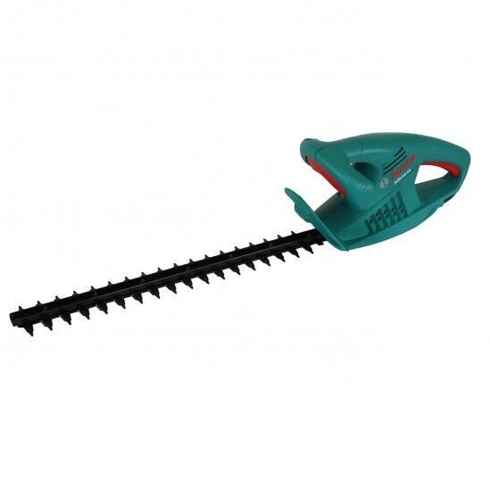 Если в вашем распоряжении есть дачный или приусадебный участок, на котором в изобилии растут кустарники и мелкие деревья, то кусторез Bosch AHS 45-16 будет вам крайне полезен. С помощью этого надежного инструмента можно быстро и с комфортом придавать форму живым изгородям и выполнять другие работы. Установлен двусторонний нож, длина режущего полотна которого составляет значительные 450 мм. Максимальная толщина реза равна 16 мм. Кусторез Bosch AHS 45-16 получает питание от сети, поэтому вам не придется заботиться о зарядке аккумуляторов и производить иные действия. Инструмент приводится в действие производительным электромотором, мощность которого равна 420 Вт. Запаса мощности двигателя хватает на работу любой сложности с высокой интенсивностью. Одним из преимуществ кустореза является невысокая (лишь 2.6 кг) масса его корпуса. Даже если вы будете работать в течение длительного времени, то вряд ли устанете. Способствует обеспечению высокого уровня комфорта работы и эргономичная рукоятка. Корпус кустореза окрашен в практичный темно-зеленый цвет. В комплект входит крышка ножа. ikarvon.uz