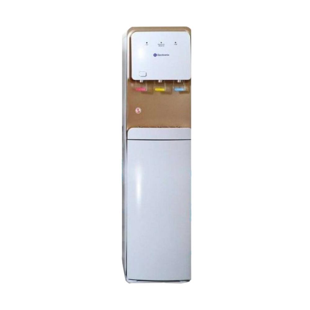 Прибор рассчитан на использование 19-литровой бутыли с загрузкой снизу. Температура охлаждения воды доходит примерно до +10°с, температура горячей воды доходит до +94°с. Защита от детей. Электрическое охлаждение.