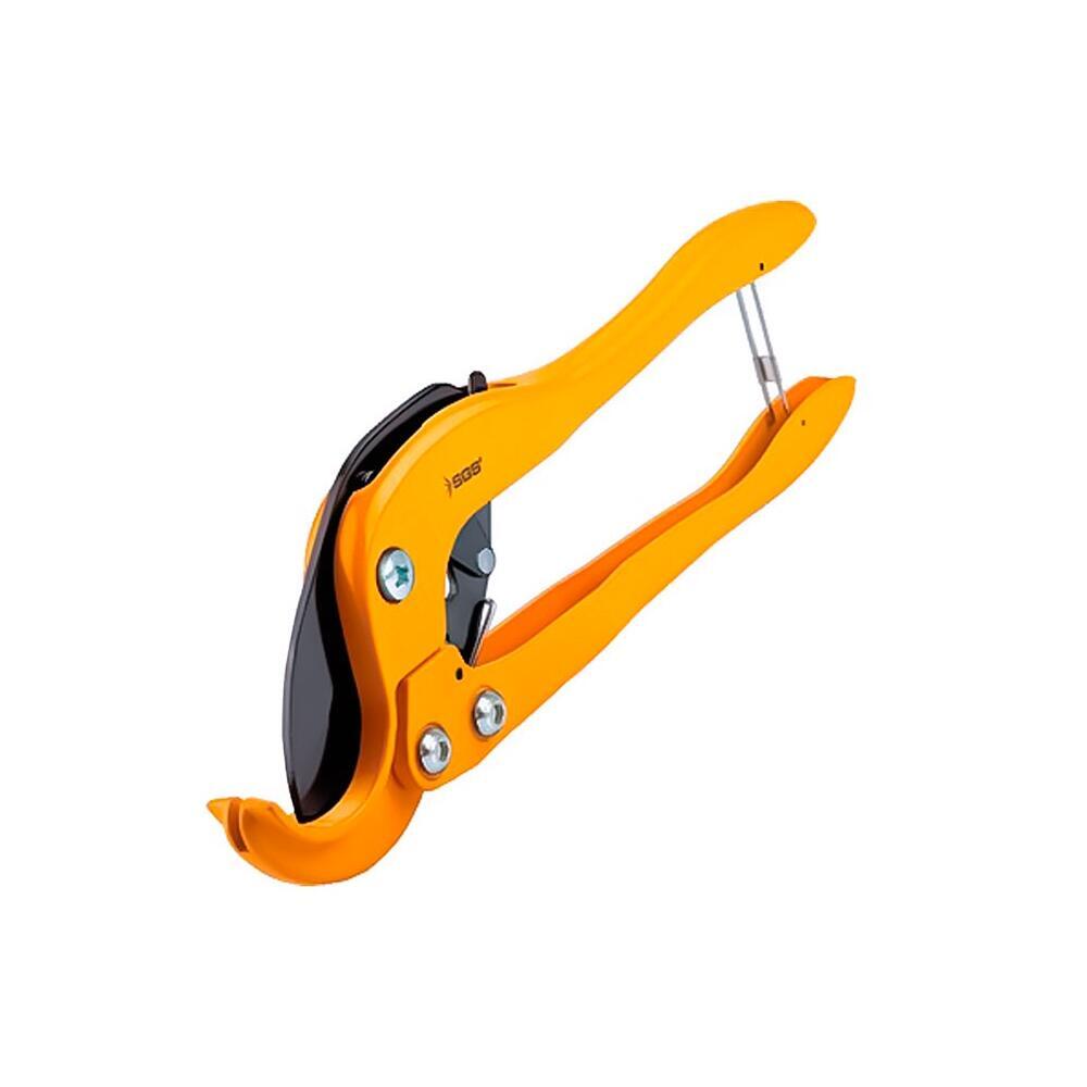 Ножницы для резки ПВХ, PEX, пластиковых шлангов, резиновых шлангов, нейлона, PV, ABS, PE, полистирольных труб диаметром до 63 мм. Прочный алюминиевый корпус обладает высокой устойчивостью к давлению. Термически обработанное и заточенное лезвие из высокоуглеродистой стали обеспечивает высокое качество резки. Простая конструкция режущей части гарантирует комфортную эксплуатацию.