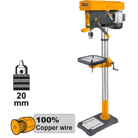 Сверлильный станок INGCO DP207505 — это универсальный инструмент, предназначенный для сверления отверстий в различных материалах, таких как дерево, металл и пластик. Вот несколько ключевых характеристик и особенностей этого станка: