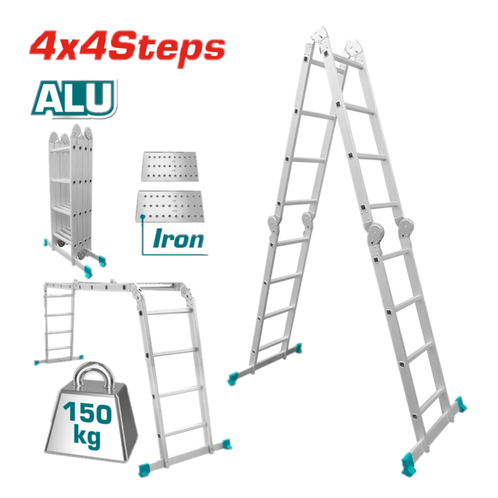 Лестница-трансформер TOTAL THLAD04441 — это многофункциональная модель, которая подходит как для профессиональных строительно-ремонтных работ, так и для использования в быту. Благодаря своей конструкции, она может принимать различные положения и легко трансформироваться для выполнения широкого спектра задач.