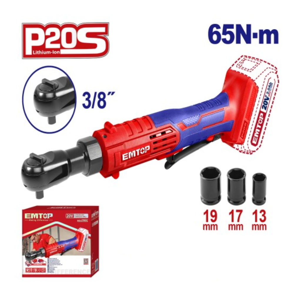EMTOP EDRL2060151 — это компактная аккумуляторная трещотка-ключ, который будто создан для узких, неудобных мест. Она лёгкая и манёвренная, так что ты не будешь тянуться гаечным ключом, пытаясь дотянуться до болта — просто подставишь её, и она аккуратно «схватит» крепёж и провернёт.