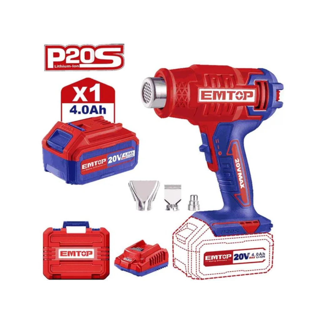 Аккумуляторный фен строительный EMTOP EHGN200215