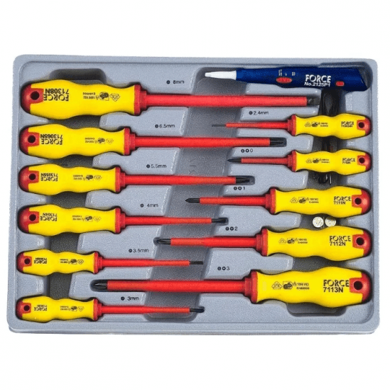 Набор инструментов Force в кейсах производится компанией Shyang Yun Hardware Co., Ltd., за плечами которой - более 20 лет опыта производства профессиональных инструментов. В сравнительно небольшом объеме умещается довольно полный ассортимент всех необходимых инструментов. Помимо цельных отверток, в комплектах имеются трещотка и Т-образный вороток, к которому прилагаются отверточные насадки. Накидные головки в комбинированных ключах имеют 12-гранный профиль, что значительно облегчает захват гайки. Торцовые головки имеют закругленный профиль, это позволяет увеличить площадь соприкосновения с гайкой. Особенностью этих универсальных наборов является наличие разных гаечных удлинителей. Продуманное сочетание инструментов, их превосходное качество и удобное расположение в чемодане-кейсе позволяют использовать наборы Force для решения широкого спектра задач.